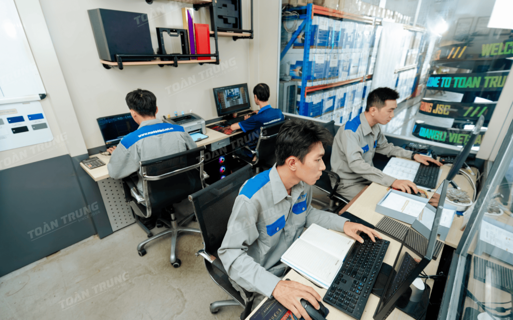 Toàn Trung sở hữu năng lực sản xuất đạt chuẩn quốc tế, được chứng nhận ISO 9001:2015. Xưởng được trang bị máy móc hiện đại, quy trình khép kín, cùng đội ngũ kỹ sư giàu kinh nghiệm, đảm bảo sản phẩm chất lượng cao, bền bỉ và tối ưu nhất đến tay khách hàng.